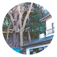 住宅地内にあって倒すことの出来ない樹木は、ロープや